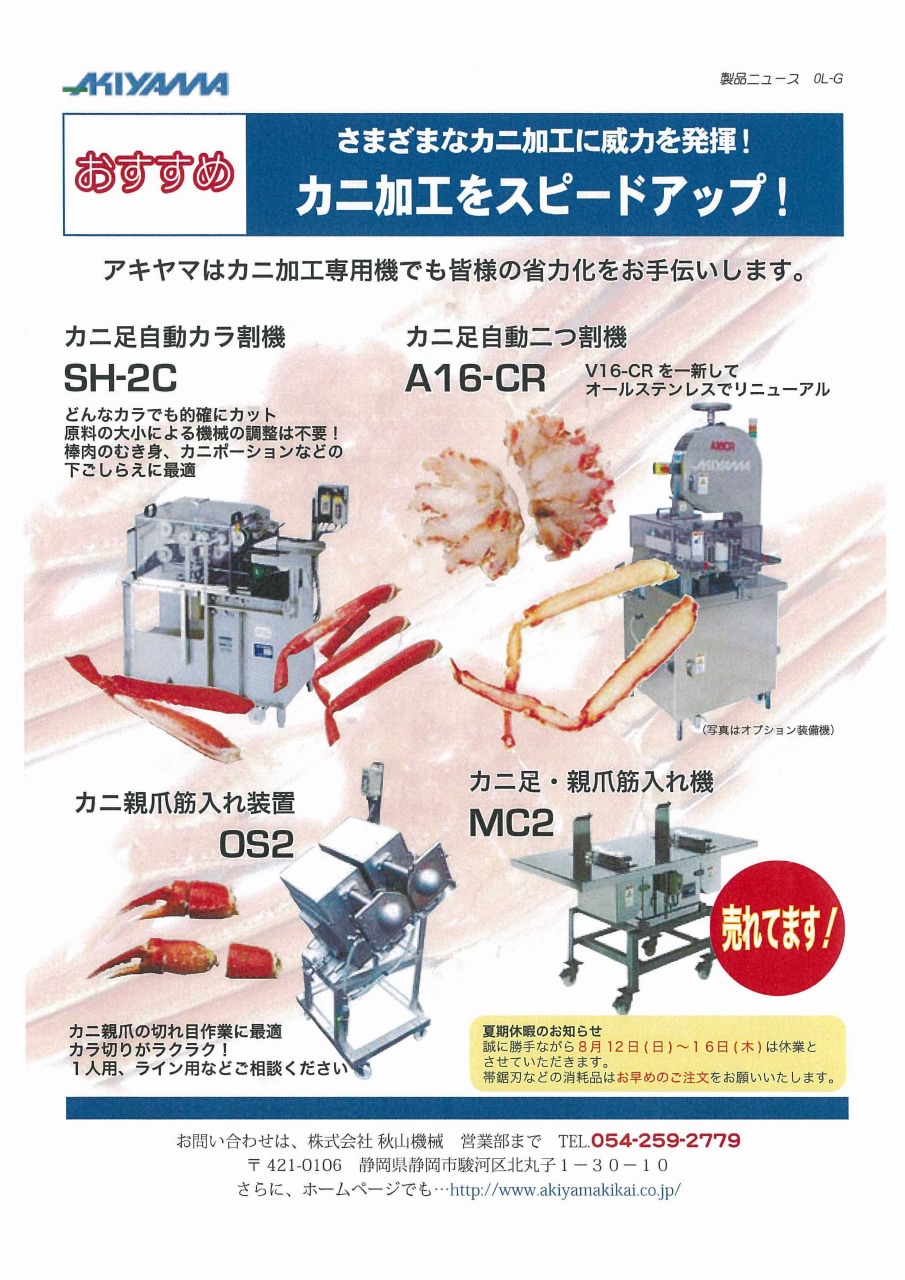 アキヤマはカニ加工専用機でも皆様の省力化をお手伝いします。