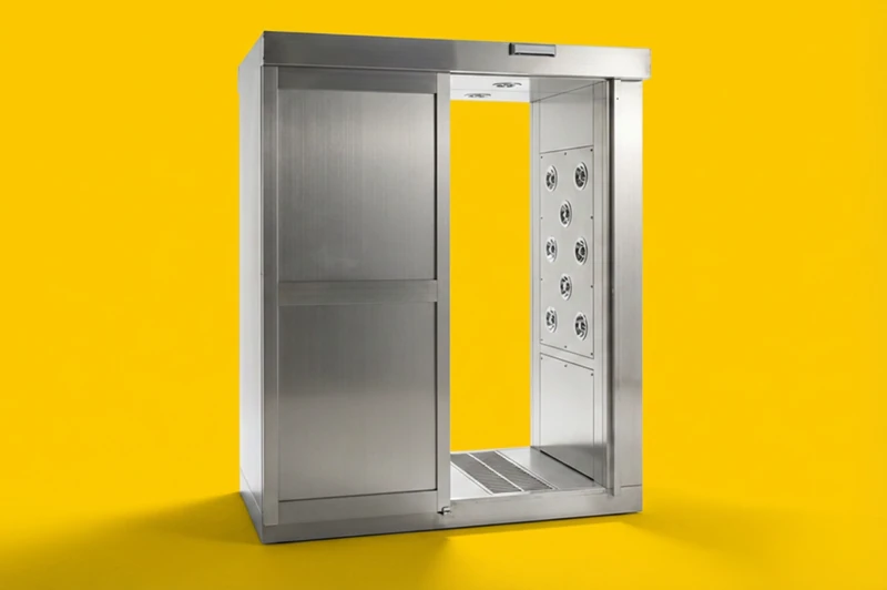 入室時に高速気流で衣類・体表面の異物・塵・菌の持ち込みを防止するエアーシャワーです。