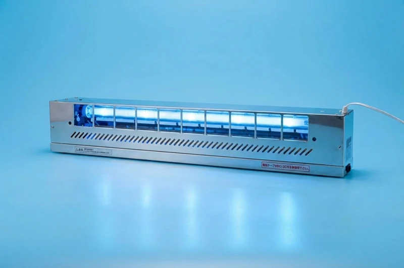 紫外線誘引式の粘着テープ型捕虫器。異物混入対策として虫を引き寄せ粘着テープで捕獲します。