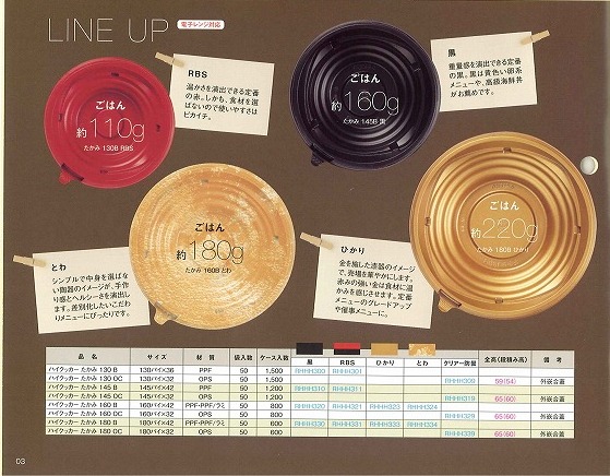 ごはんの量110g(130パイ)から220g(180パイ)まで4サイズ取り揃えています。